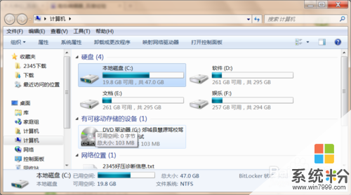 5回到我的电脑,就会发现C盘可用空间变大了。