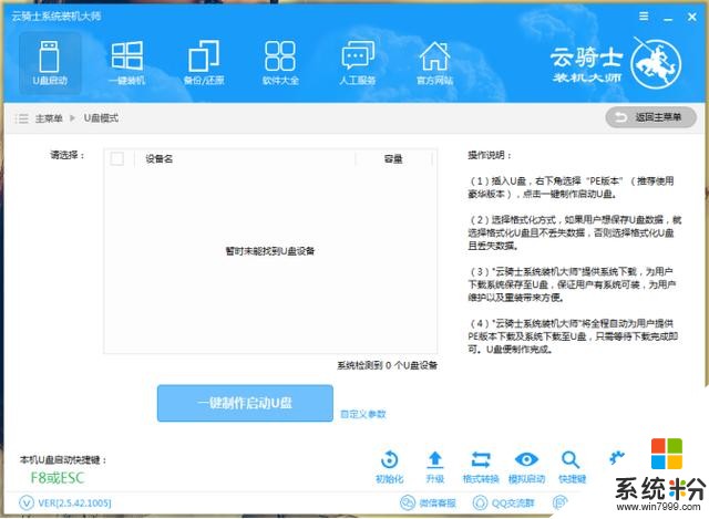 1、首先我们都知道以前在系统光盘里面就有ghost手动安装,那现在随着技术的发展我们都是用U盘启动来装系统了,那这里我们也用U盘启动来操作,首先下载一个制作U盘启动的软件,具体的制作U盘的方法这里就不去详细写出来了,我这款软件的制作方法在云骑士官方网站有自己可以去看看,如果你连制作U盘启动都不会的话 小编我劝你还是别冲动去手动安装系统,免得系统奔溃了不会修复回去。